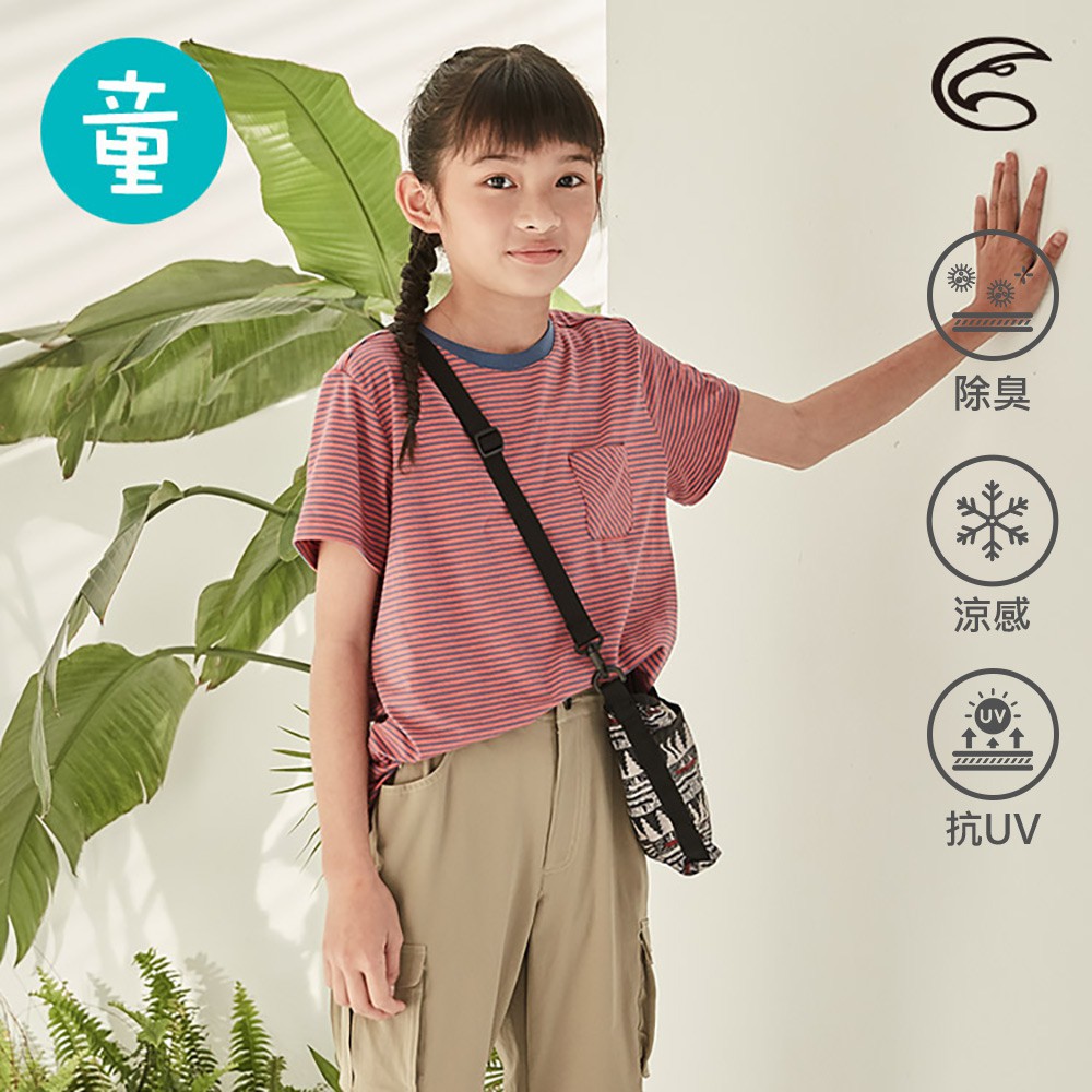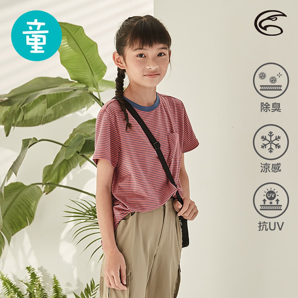 ADISI 童鋅離子抗菌消臭條紋圓領上衣AL2111127【紅藍條紋】吸濕 排汗 快乾 抑菌 除臭 防曬 涼爽 排汗衣