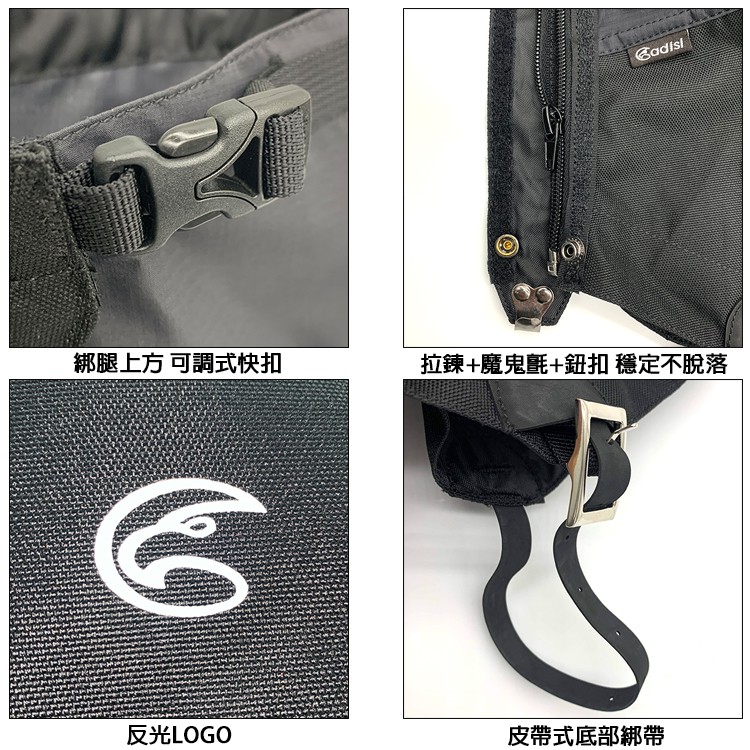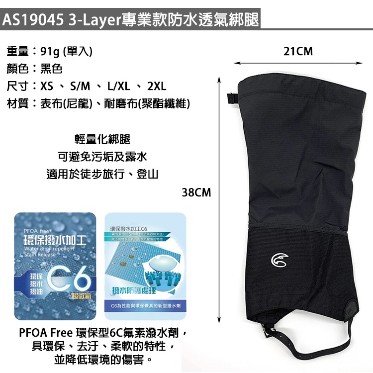 ADISI 登山專業款防水透氣綁腿 【Castle-tec 3L防水透氣布料】– 黑色 AS19045 登山 綁腿
