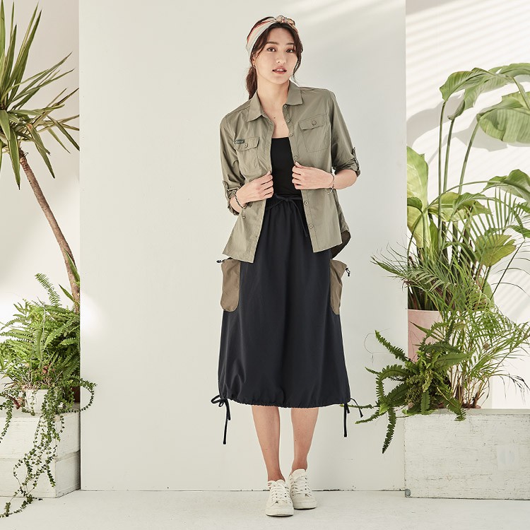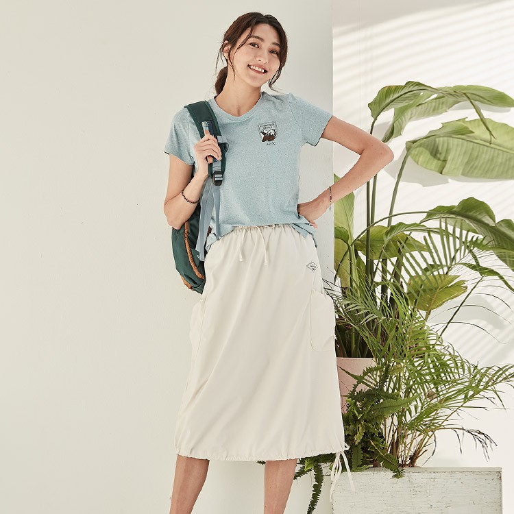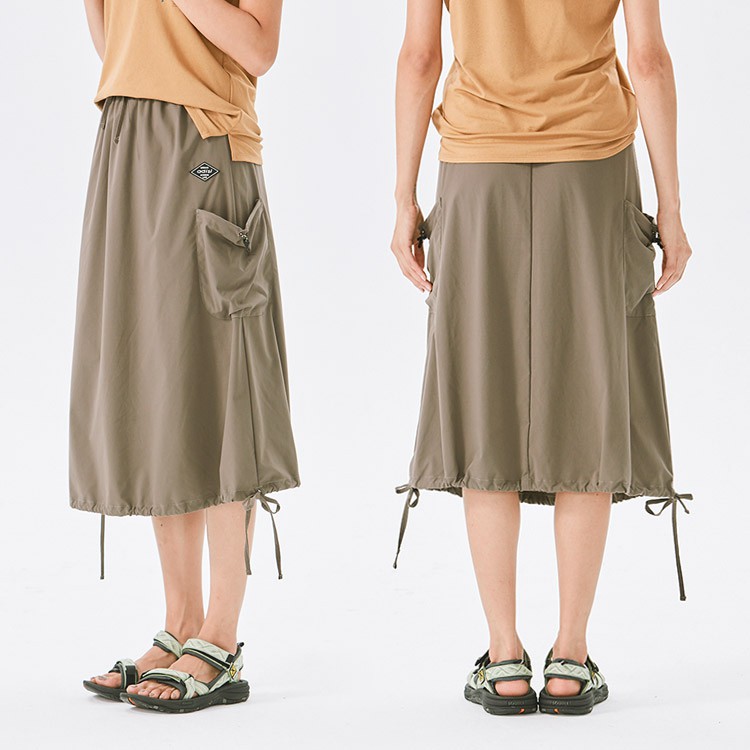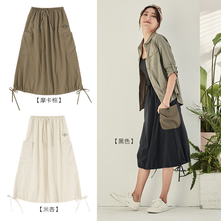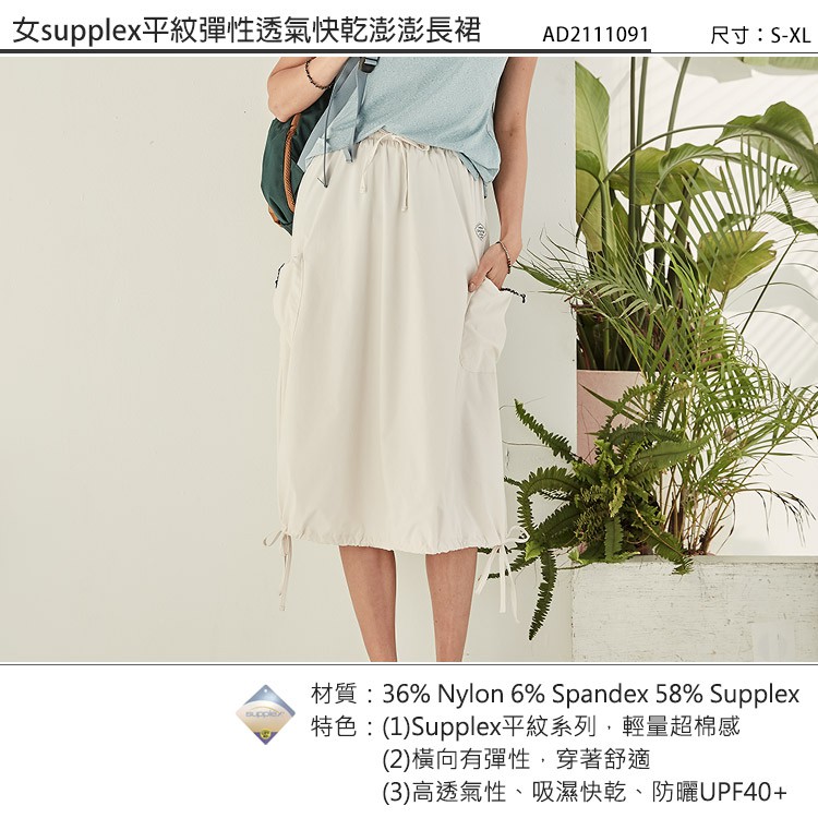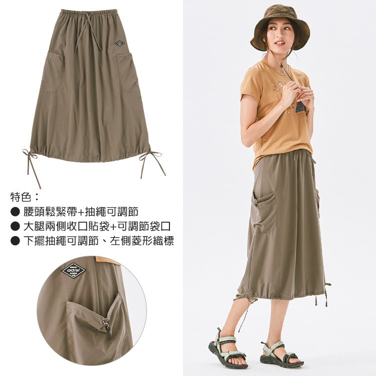 ADISI 女Supplex平紋彈性透氣快乾澎澎長裙AD2111091 米杏 (S/M) 防曬 速乾 輕薄 裙子 吸濕