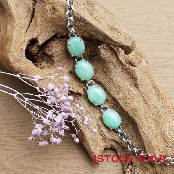 石頭記 冰清芙蓉種翡翠925純銀手鍊-簡約風華