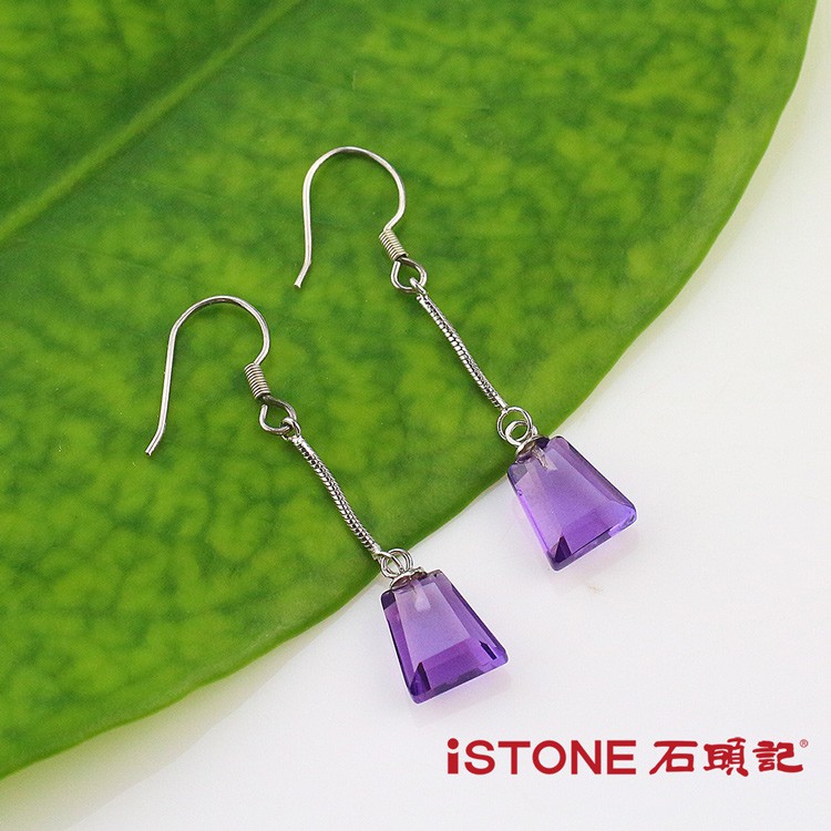 石頭記 925純銀紫水晶耳環-垂墜風 幾何梯形