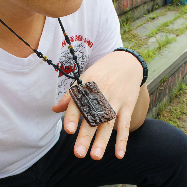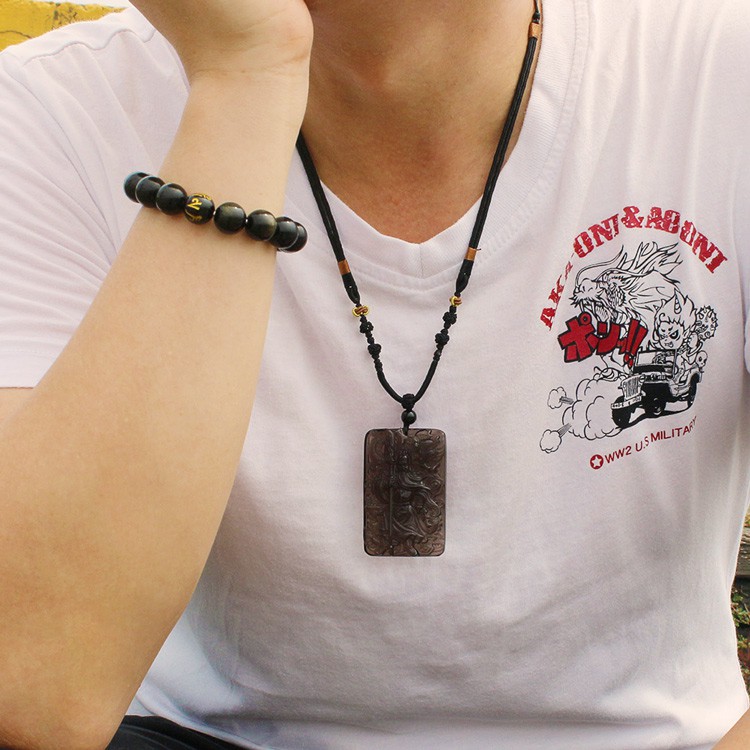【黑曜石項鍊】關公 避邪 擋煞 招財 農曆七月【石頭記-黑曜石關公項鍊-關聖帝君-冰種黑曜石】