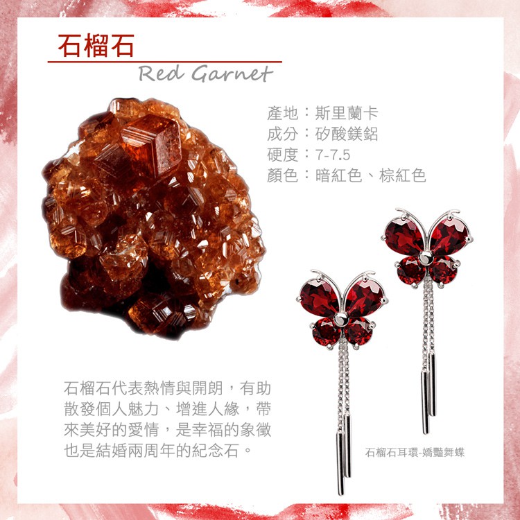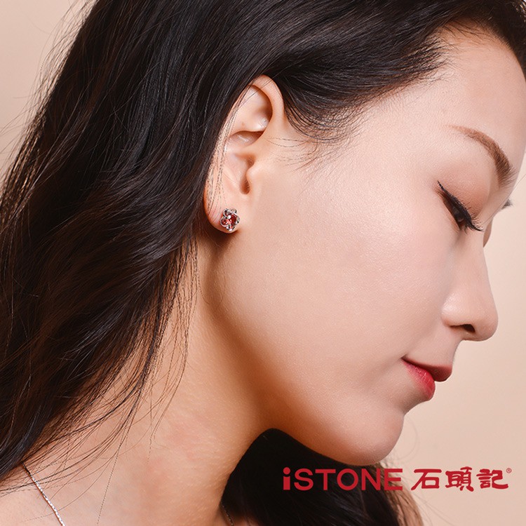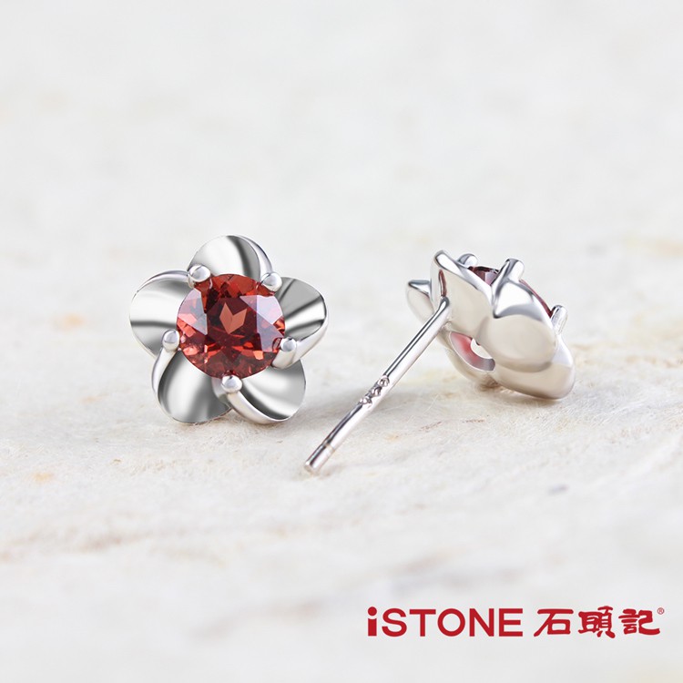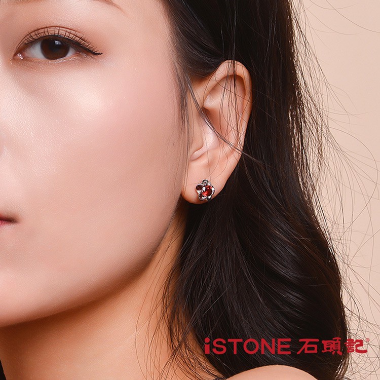 石頭記 925純銀耳環 紅石榴石-魅力花火