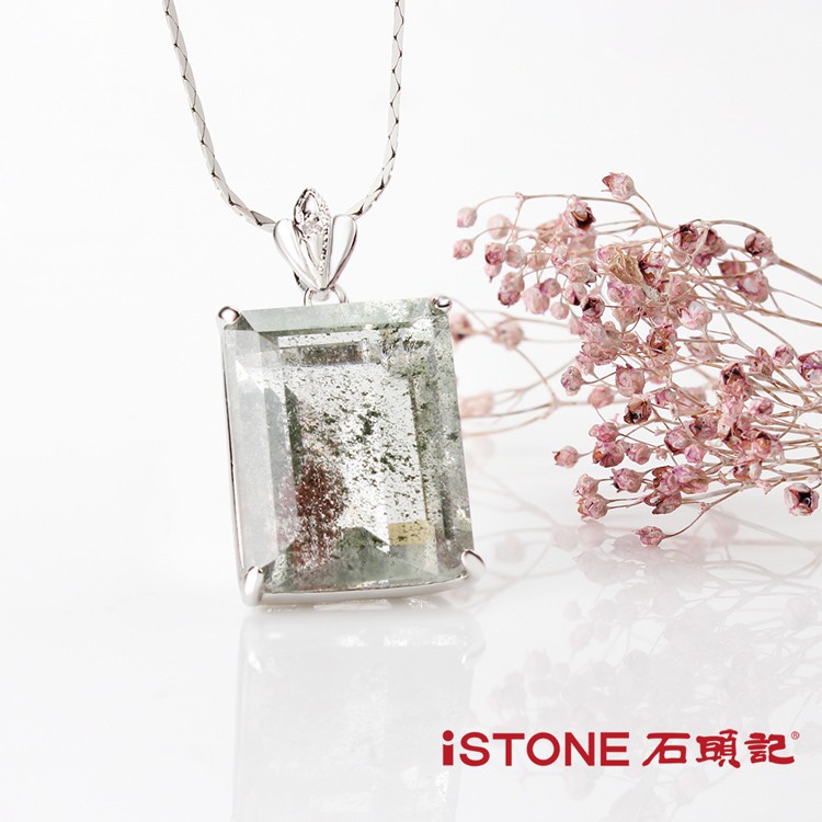 石頭記天然綠幽靈項鍊-夢幻森林 (長方形)