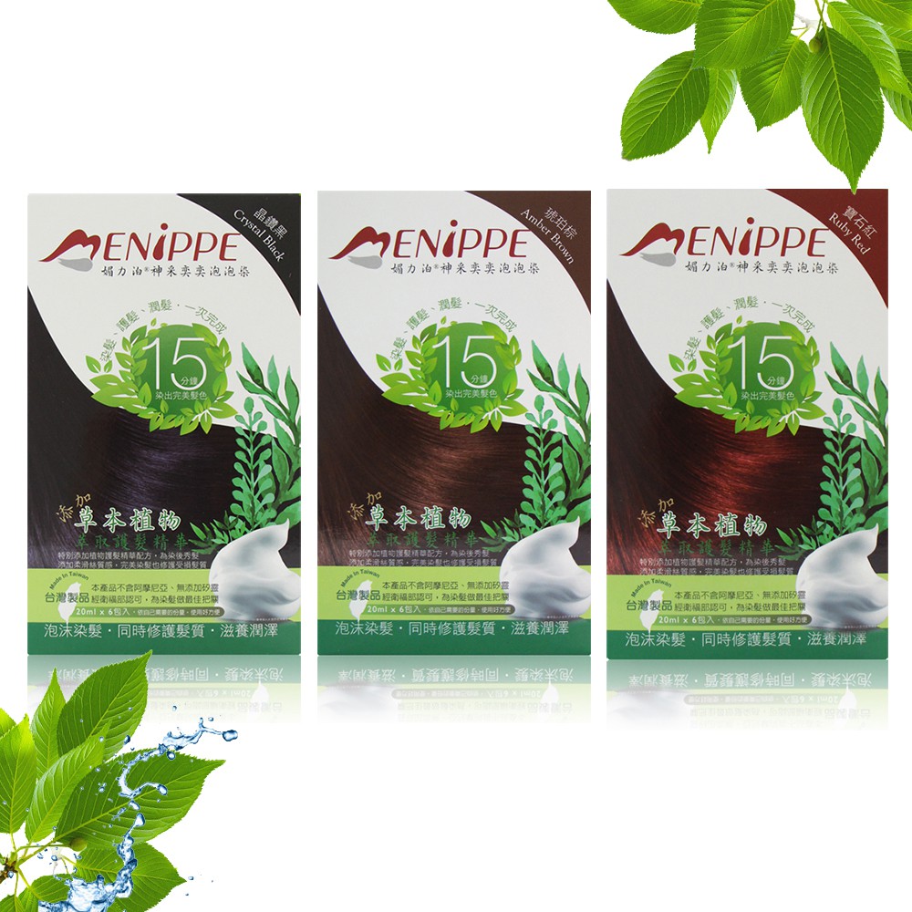 [媚力泊] 草本精華神采奕奕泡泡染髮劑 6包入/ 盒 白髮適用 三色任選(晶鑽黑 琥珀棕 寶石紅)