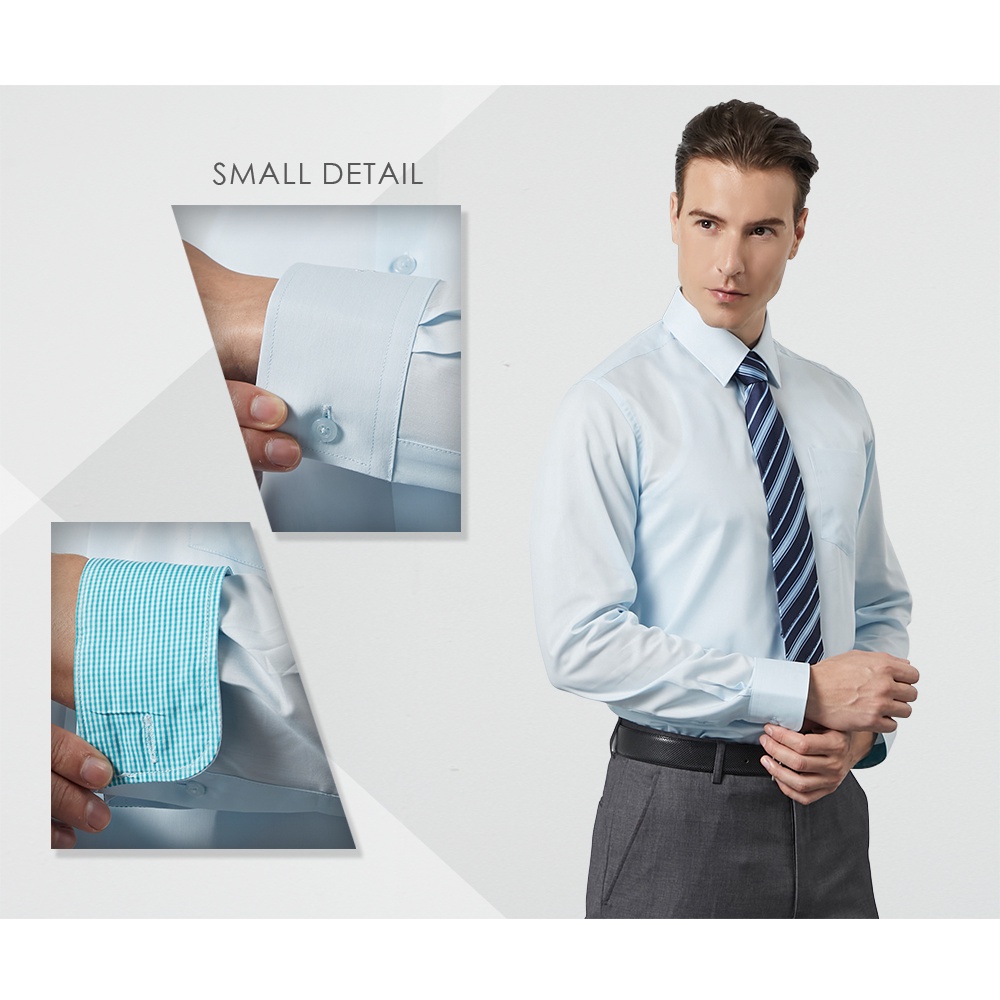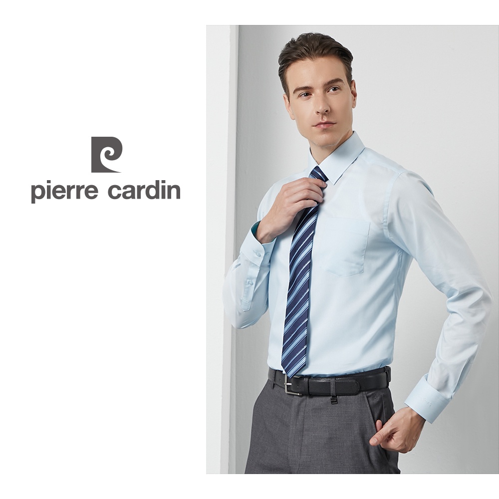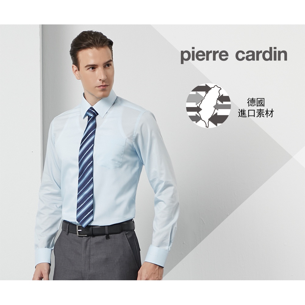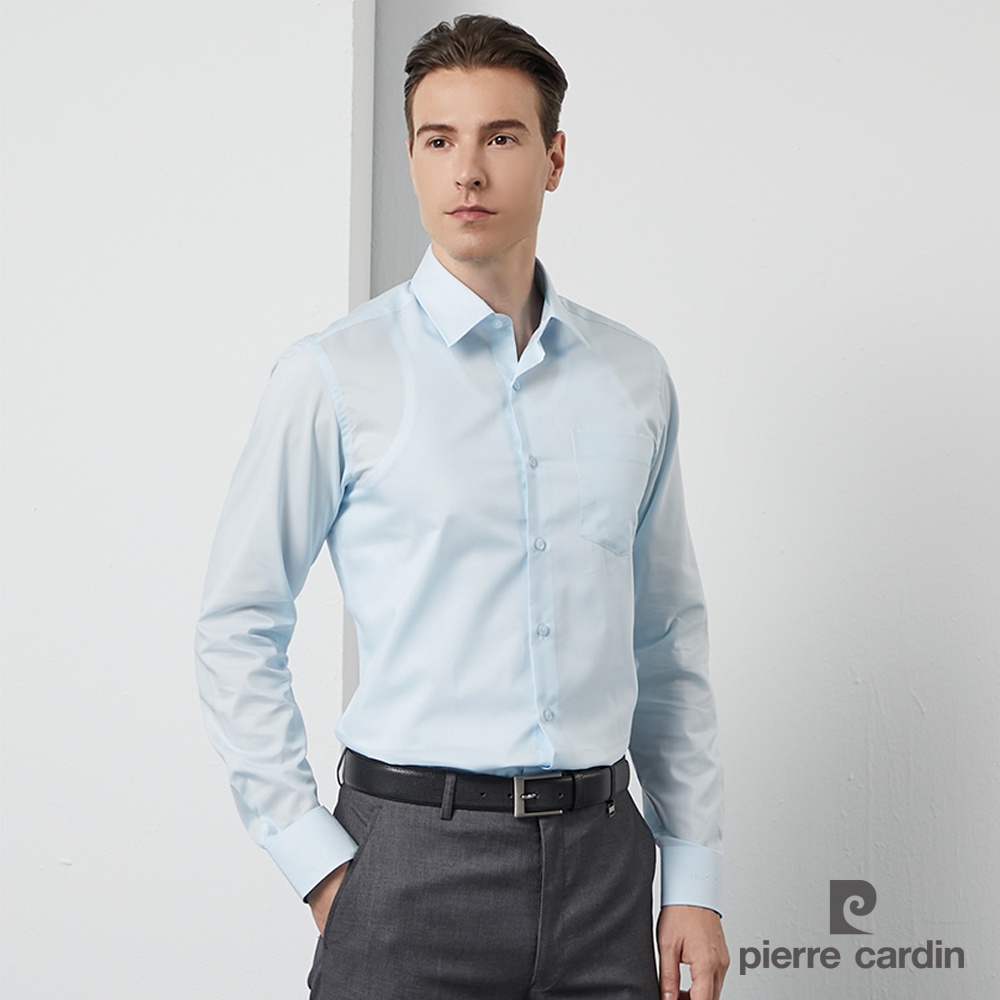 【pierre cardin 皮爾卡登】男襯衫 進口素材合身版棉混紡素色短領長袖襯衫_淺水色(61814-31)