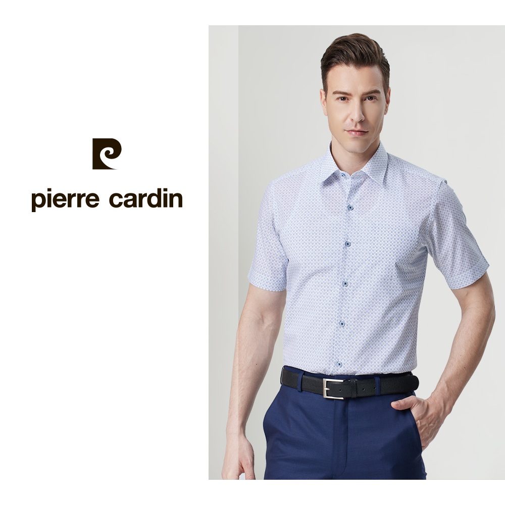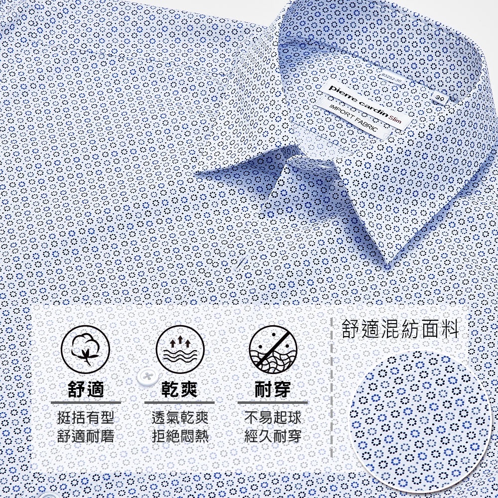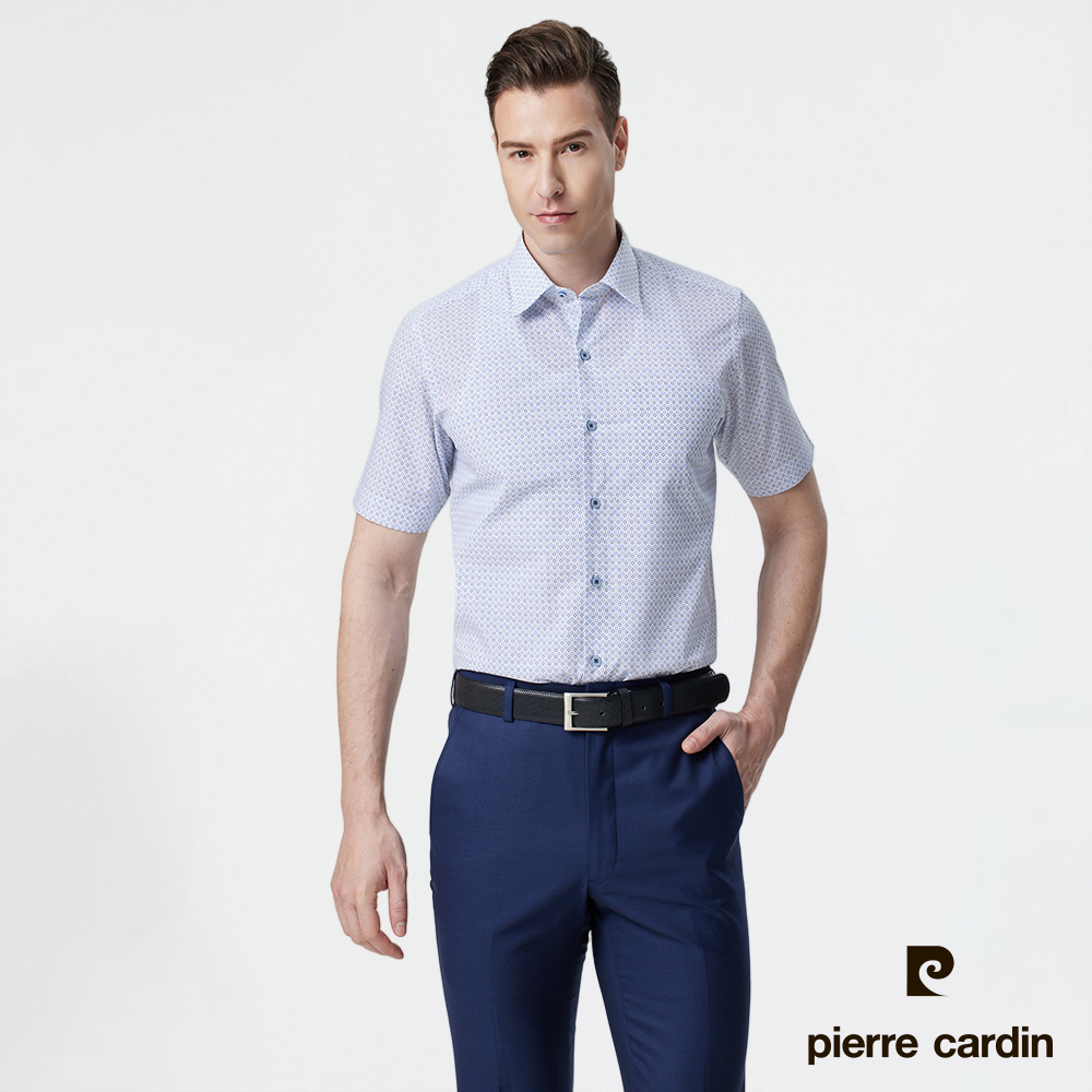 【pierre cardin 皮爾卡登】男襯衫 進口素材合身版防皺夏季清爽印花短袖襯衫_白底藍點(83252-30)