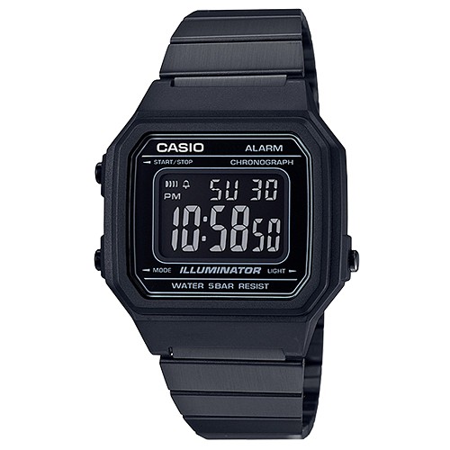 【CASIO】復古文青大顯身手不鏽鋼電子錶-黑(B-650WB-1B)正版宏崑公司貨