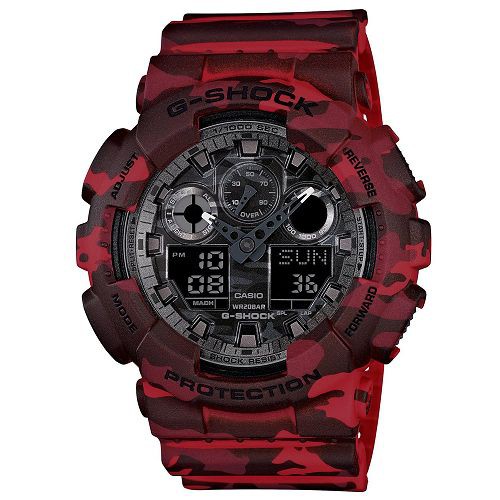 【CASIO】G-SHOCK 街頭時尚迷彩圖樣雙顯錶(GA-100CM-4A)正版宏崑公司貨
