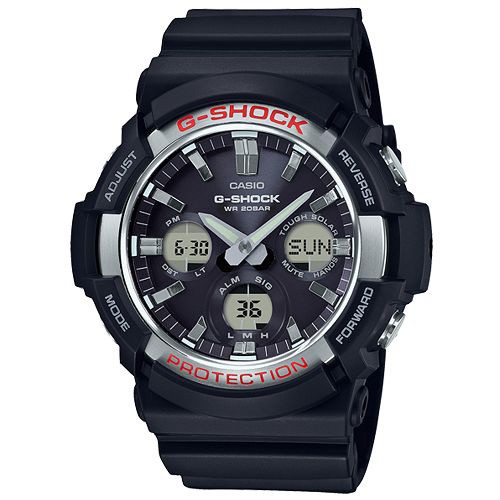 【CASIO】G-SHOCK 強悍太陽能金屬框三眼錶-黑面銀框(GAS-100-1A)正版宏崑公司貨