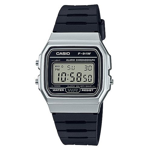 【CASIO】經典金屬色系運動電子腕錶-銀框(F-91WM-7A)正版宏崑公司貨