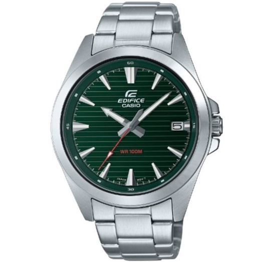 【CASIO】 EDIFICE 經典款簡約計時日曆腕錶 (EFV-140D-3A)-綠面 正版宏崑公司貨