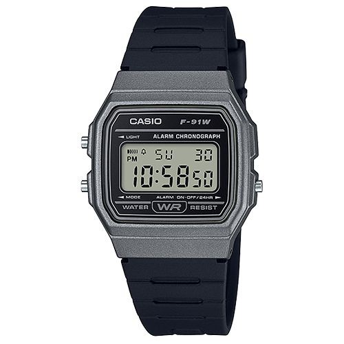 【CASIO】經典金屬色系運動電子腕錶-鐵灰 (F-91WM-1B)正版宏崑公司貨