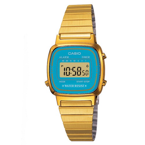 【CASIO】金色時尚質感優雅不鏽鋼電子腕錶-天藍面(LA-670WGA-2)正版宏崑公司貨