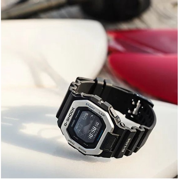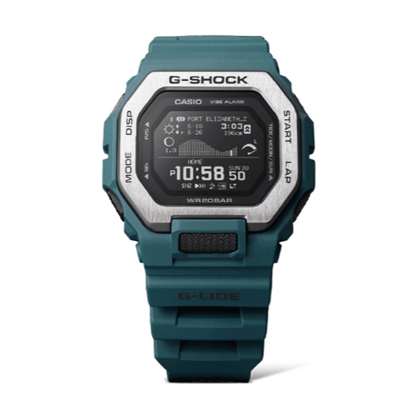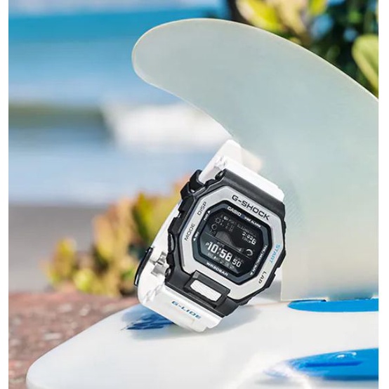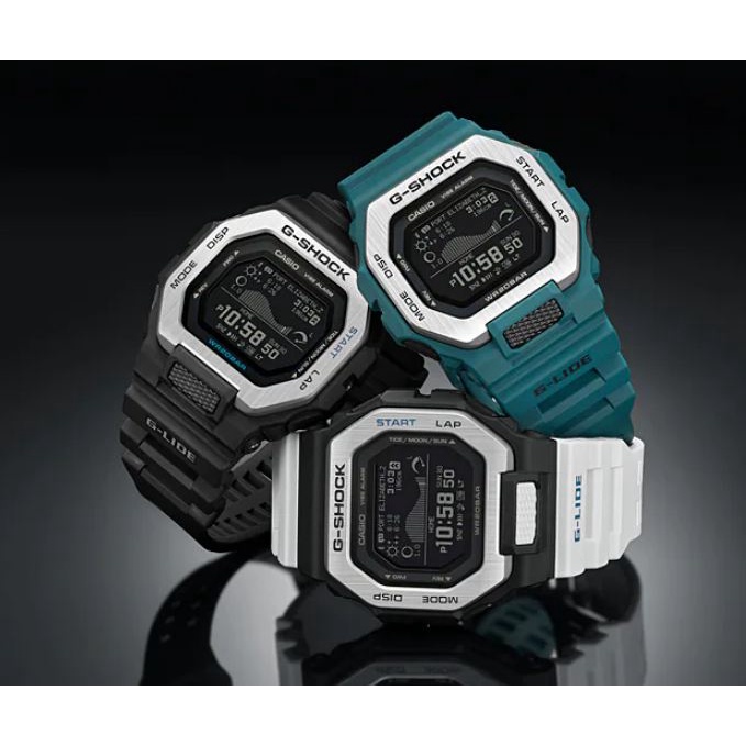 CASIO G-SHOCK 雙重材質錶圈衝浪運動智慧藍牙數位錶(GBX-100系列)黑X 銀框/藍綠/白X黑框共三色任選