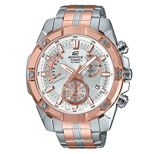 【CASIO】EDIFICE 大錶盤復古粗獷不鏽鋼錶-白X玫瑰金(EFR-559SG-7A)正版宏崑公司貨