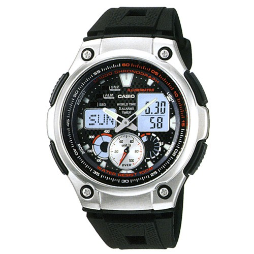 【CASIO】全新特級城市風格膠帶雙顯錶-黑面(AQ-190W-1A)正版宏崑公司貨