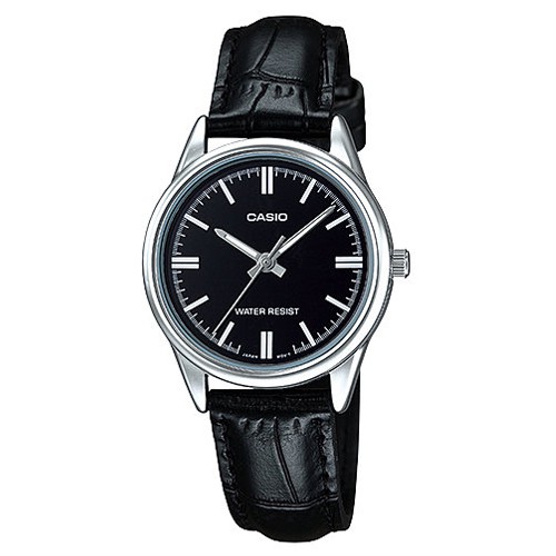 【CASIO】經典時尚銀框真皮指針錶-羅馬黑面(LTP-V005L-1A)正版宏崑公司貨
