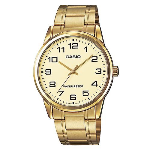 【CASIO】金質簡約不鏽鋼指針錶-數字金面(MTP-V001G-9B)正版宏崑公司貨