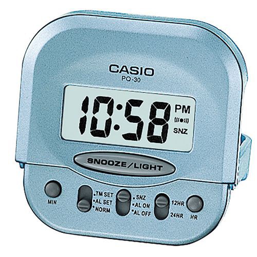 【CASIO】旅行專用款數位液晶鬧鐘-藍(PQ-30-2)正版宏崑公司貨