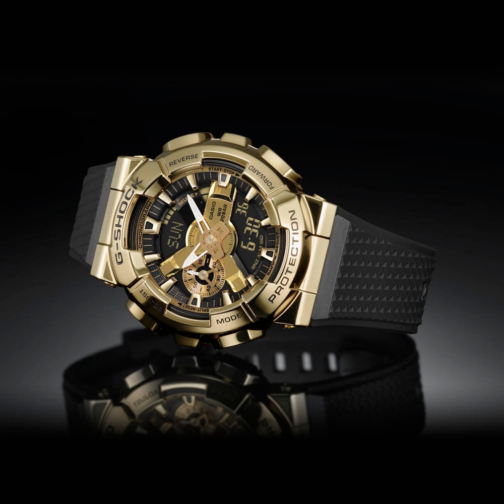 CASIO G-SHOCK 堅固時尚金屬包覆式休閒錶(GM-110G-1A9)黑金配色