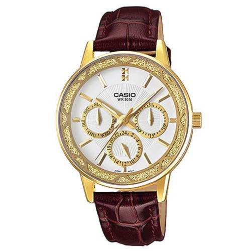 【CASIO】金緻優雅實用女伶皮帶腕錶-金框X咖啡錶帶(LTP-2087GL-5A)正版宏崑公司貨
