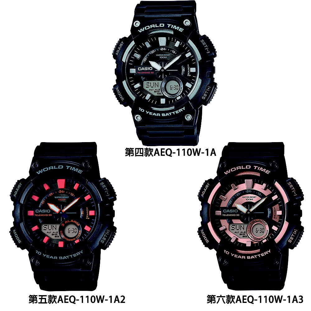 【CASIO】10年電力立體時刻雙顯錶 (AEQ-100W/AEQ-110W 系列)