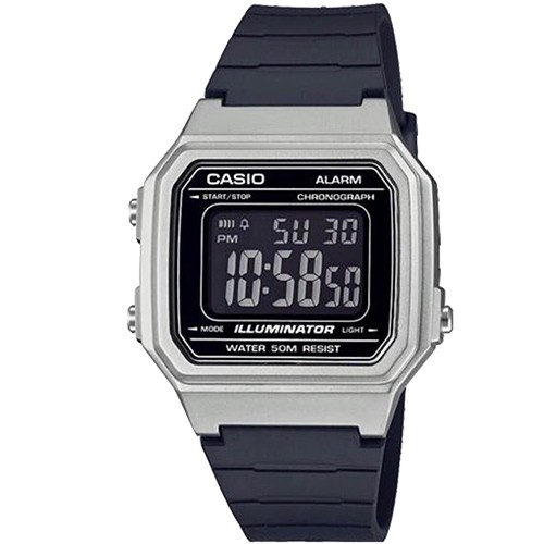 【CASIO】方形機能簡潔電子錶-銀框(W-217HM-7B)正版宏崑公司貨