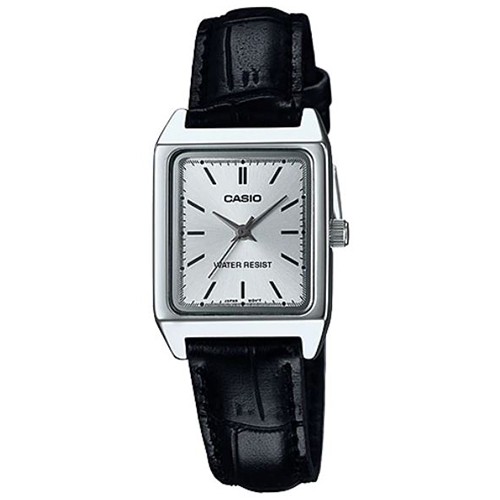 【CASIO】經典時尚方形銀框皮革腕錶-羅馬銀面(LTP-V007L-7E1)正版宏崑公司貨