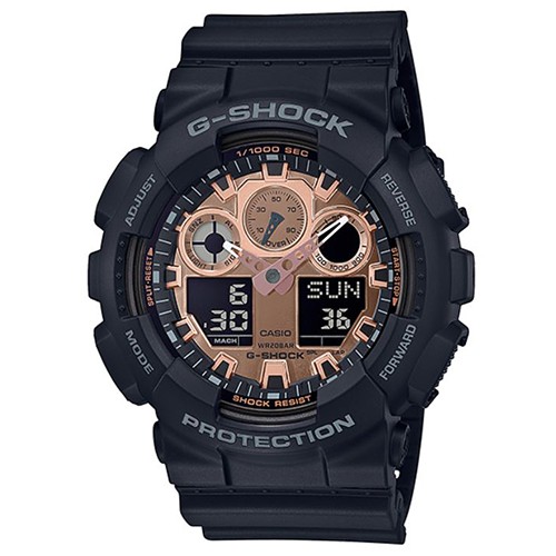 【CASIO】G-SHOCK 玫瑰金運動霧面質感雙顯錶(GA-100MMC-1A)正版宏崑公司貨