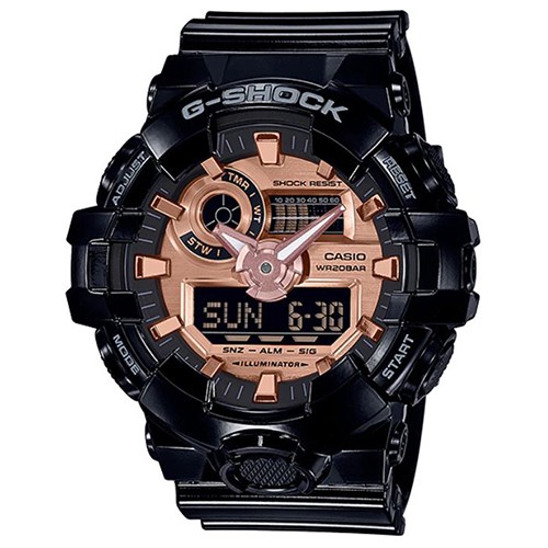 【CASIO】G-SHOCK 玫瑰金立體時刻運動亮面雙顯錶(GA-700MMC-1A)正版宏崑公司貨