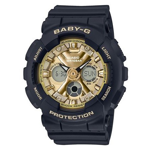 【CASIO】BABY-G 混搭金屬三眼搖滾甜美運動女錶-黑X金面(BA-130-1A3)