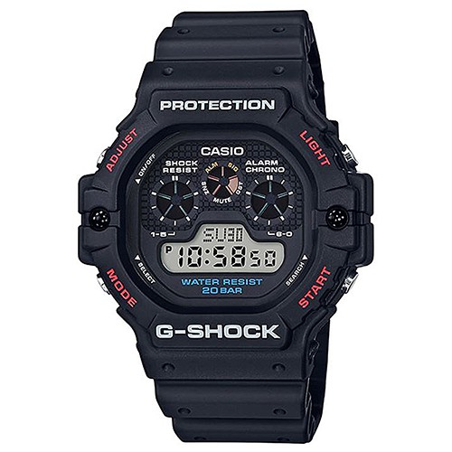 【CASIO】G-SHOCK 超復古三眼始祖電子運動錶-消光黑X紅 (DW-5900-1)正版宏崑公司貨