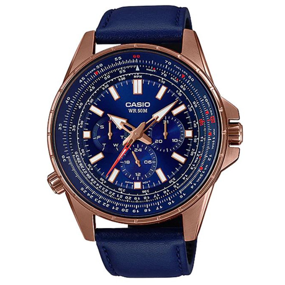 【CASIO】繁星點點三眼三針奇幻皮帶腕錶-尊爵藍(MTP-SW320RL-2A)正版宏崑公司貨