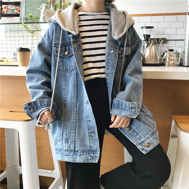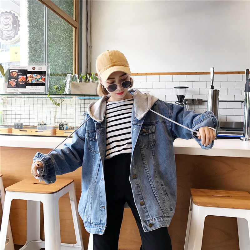 ZUCAS - 連帽牛仔外套中長款原宿風外套 - QW-4258
