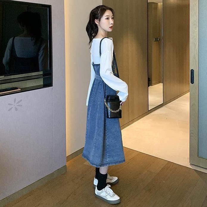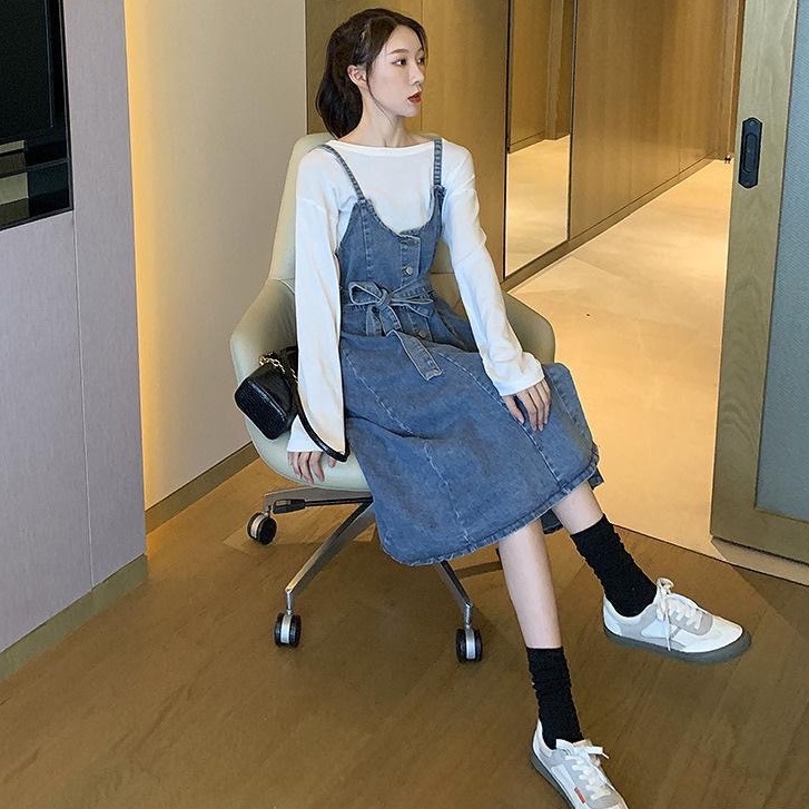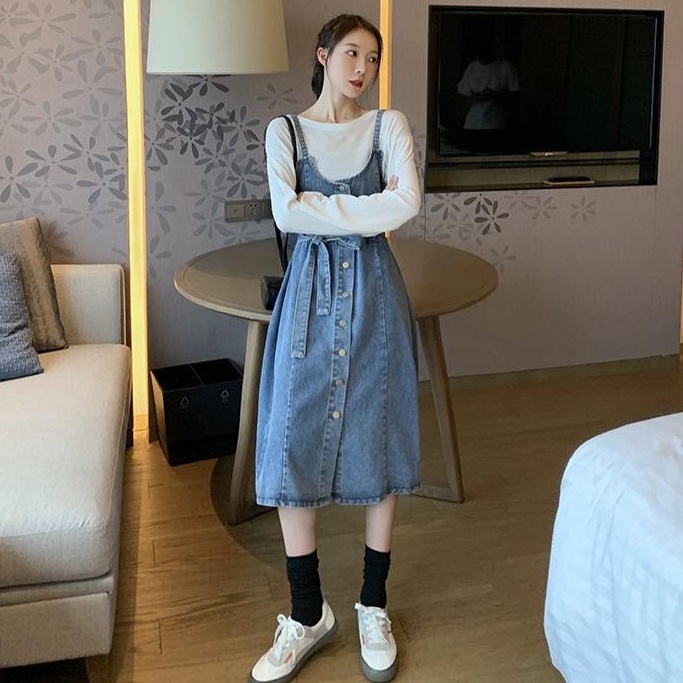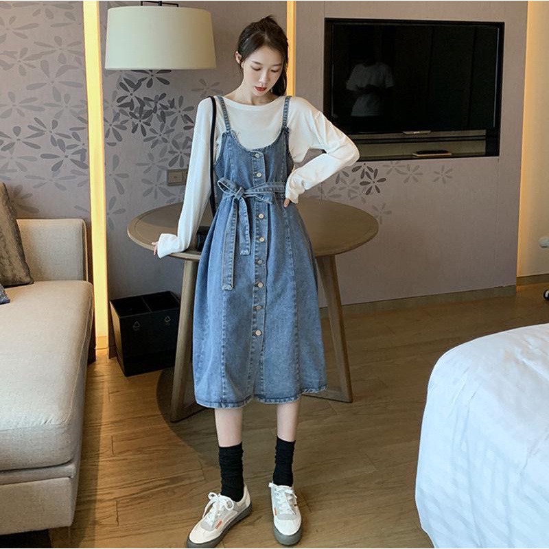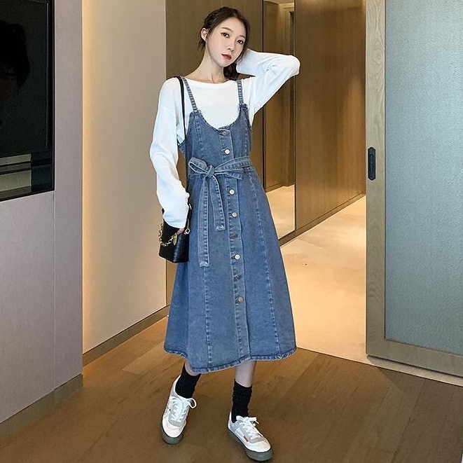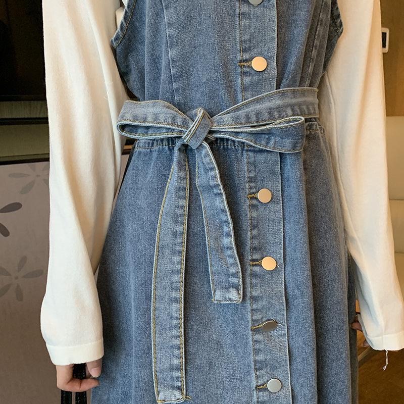 ZUCA”S - 單排扣顯瘦中長款牛仔無袖洋裝 - FR-7518