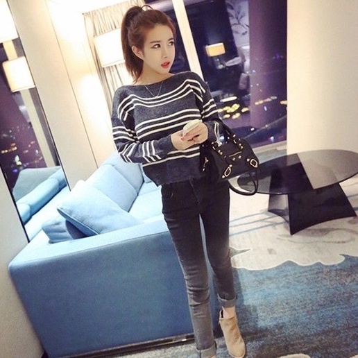 ZUCA”S - 條紋針織配色上衣 - DF-5733現貨
