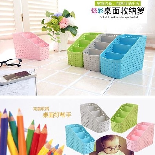 桌面多格化妝品收納遙控器雜物分類收納整理盒藤編造型4格 (GM-684)