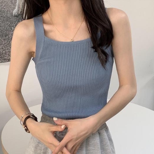 ZUCA”S - 冰絲針織背心 好看方領背心 短版針織衫 - HL-6986