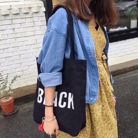 ZUCA”S - 韓風簡約字母印花大容量單肩包小清新帆布包 - PP-561