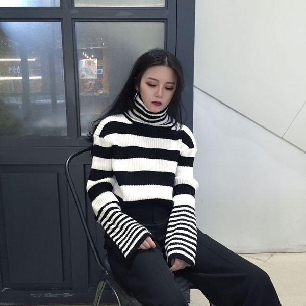 ZUCA”S~(現貨)條紋高領針織衫 - T-224