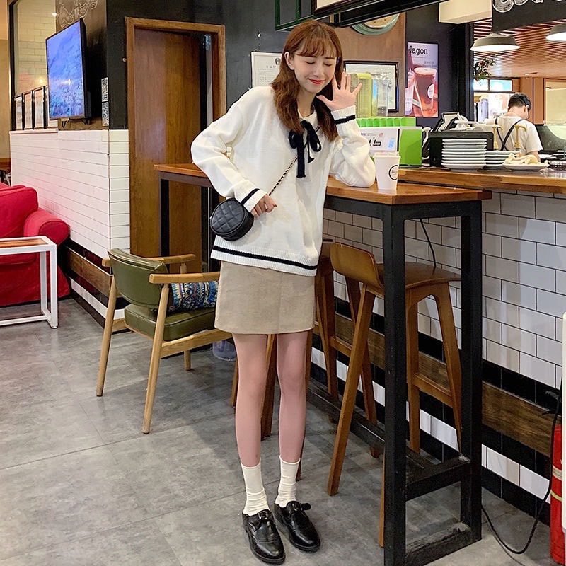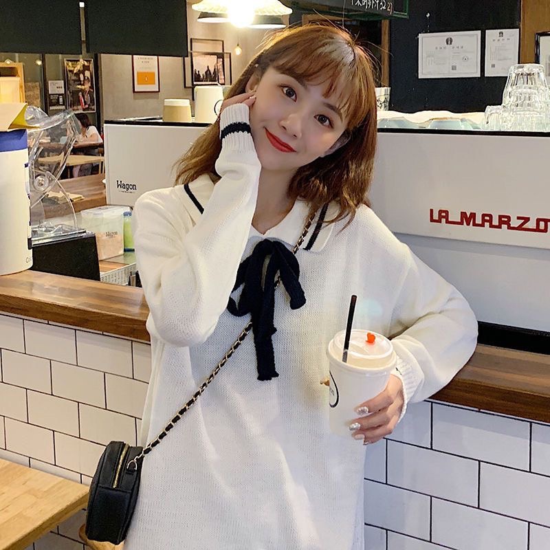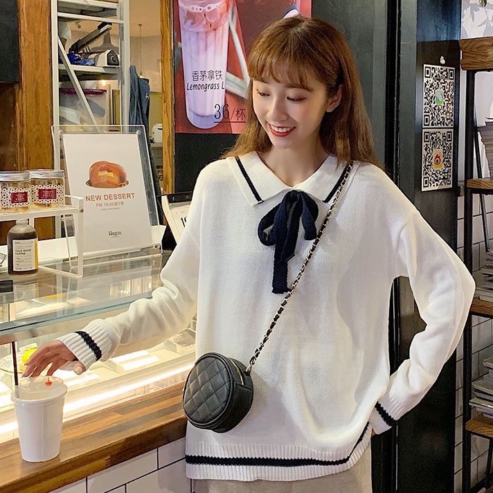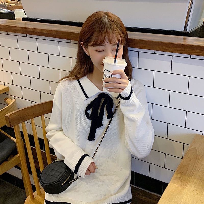 ZUCA”S - 蝴蝶結毛衣翻領套頭甜美針織衫 - RT-2007