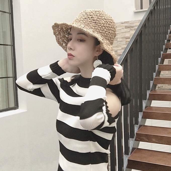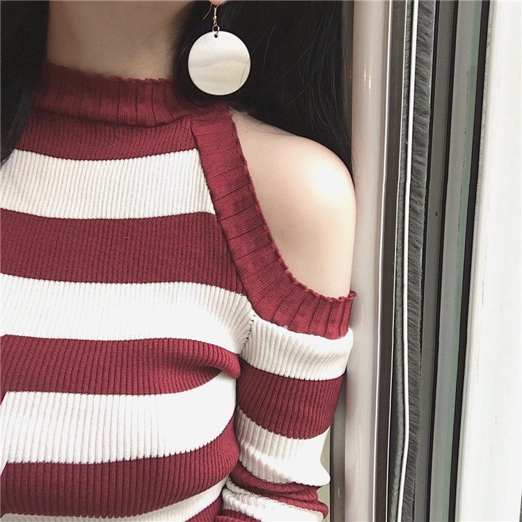 ZUCAS~長袖毛衣女套頭顯瘦薄款針織打底衫露肩針織上衣(A-636)