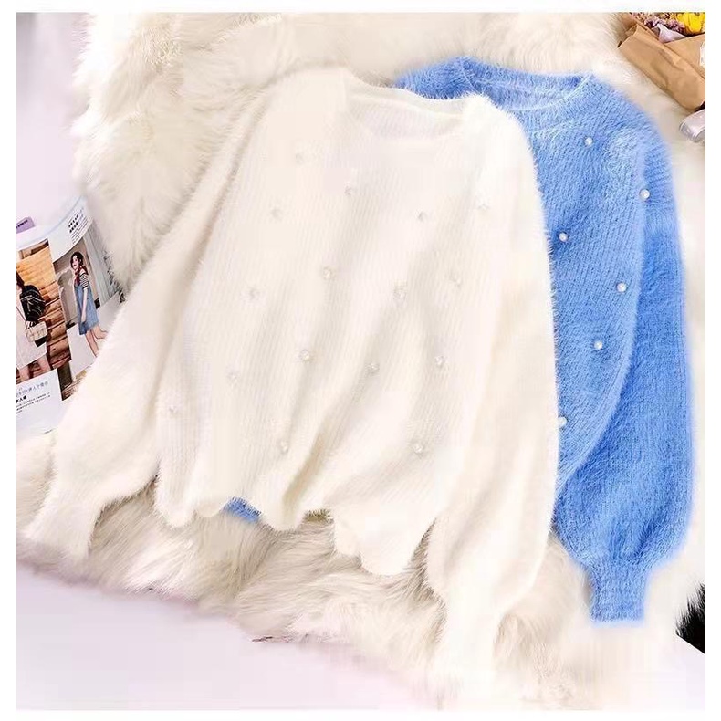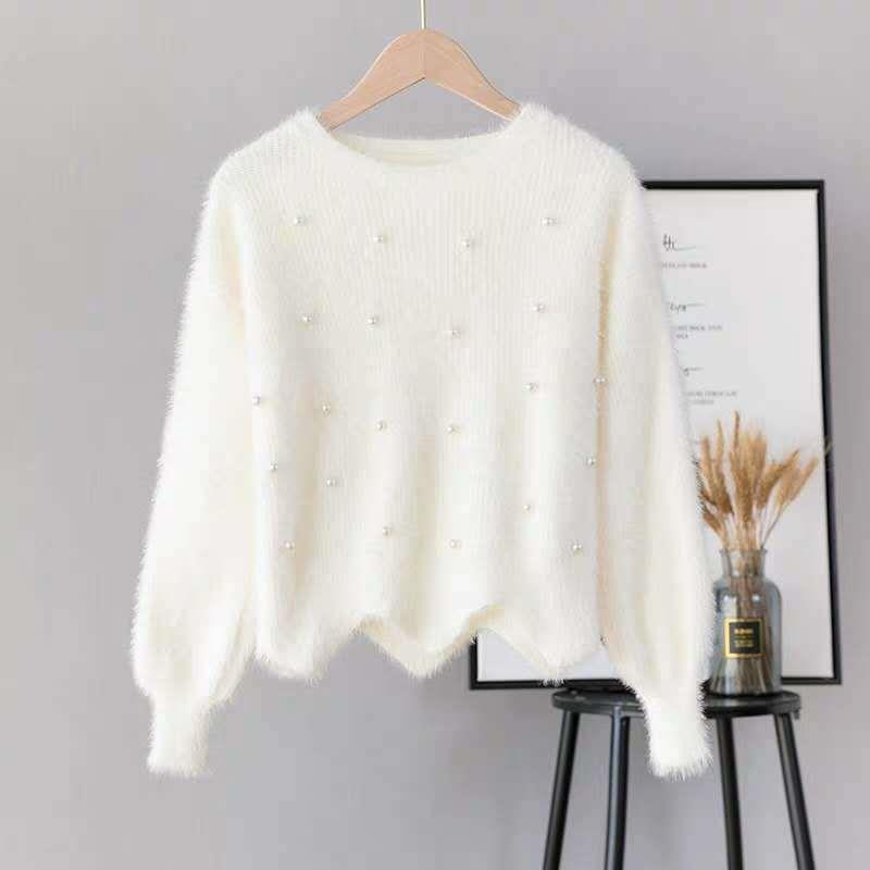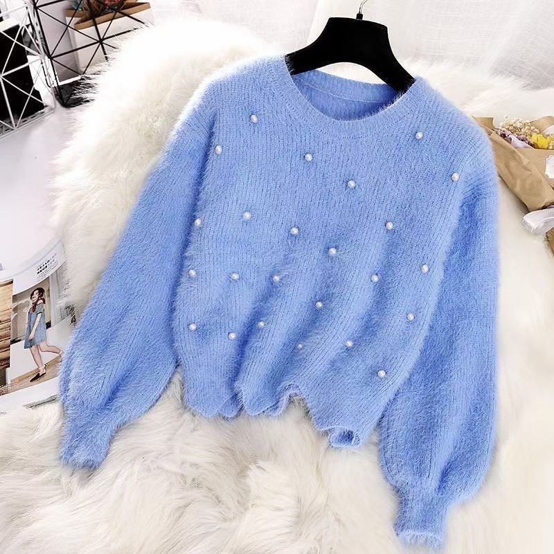 ZUCAS- (XA-8810)馬卡龍糖果色釘珠毛絨針織百搭短款毛衣