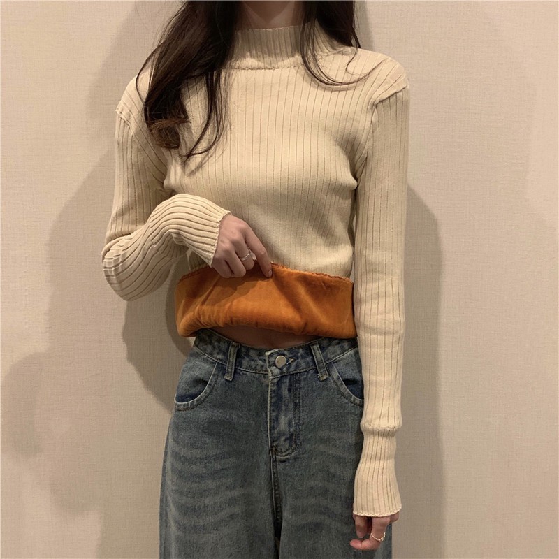 ZUCA”S - 極度保暖!內刷短絨毛坑條針織上衣 - TD-5491