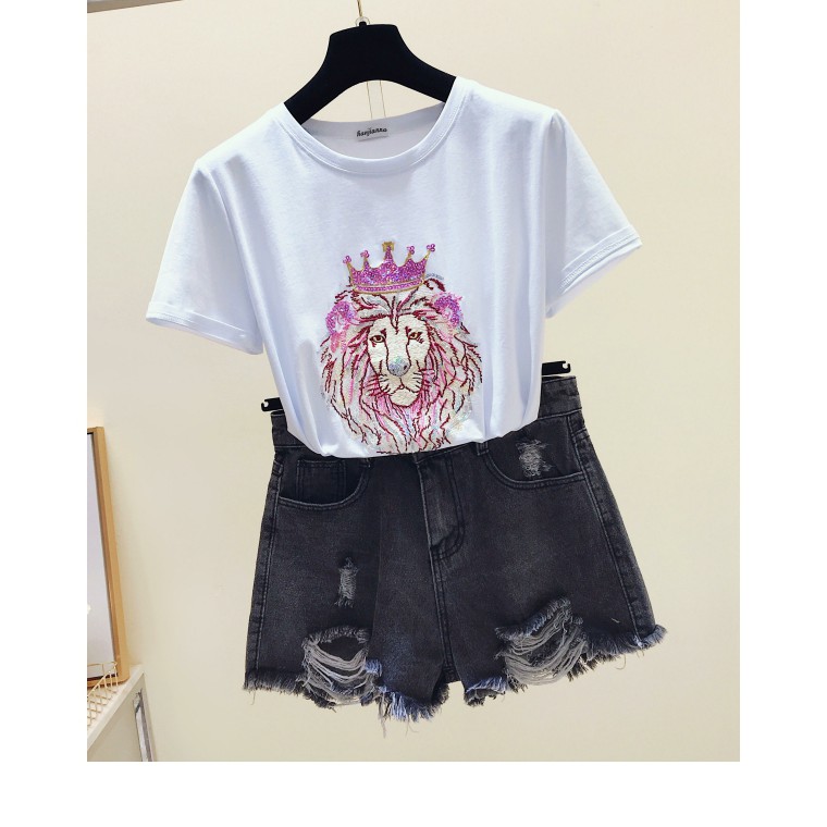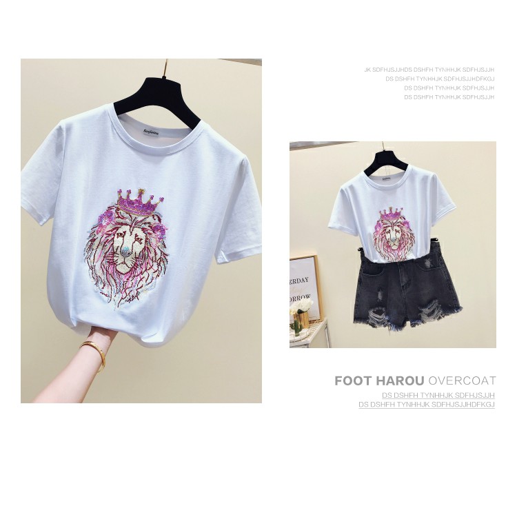 ZUCA”S - 亮片刺繡圓領短袖T恤 - T-5945現貨