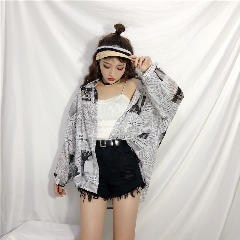 ZUCA”S~(現貨)復古報紙印花蝙蝠長袖襯衫 - XA-1351