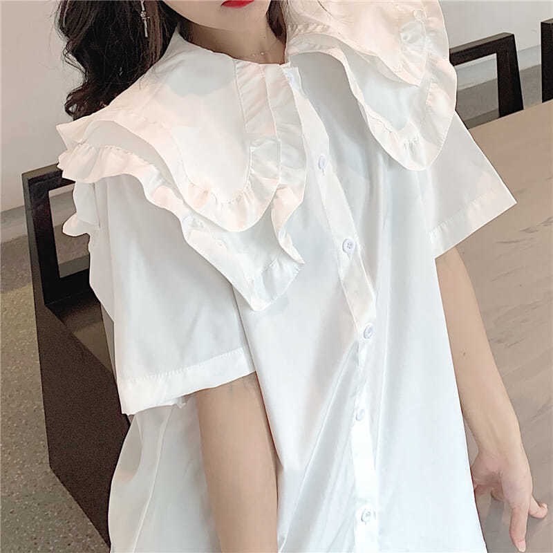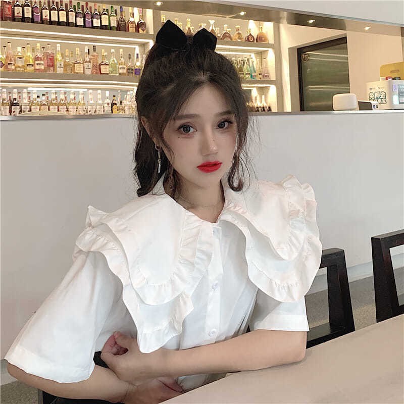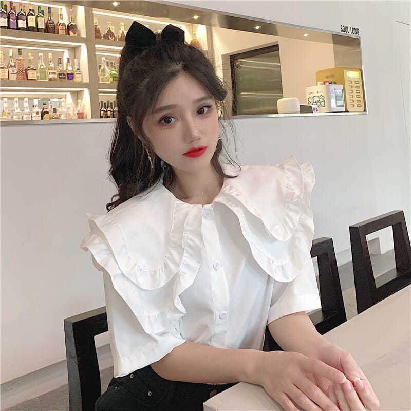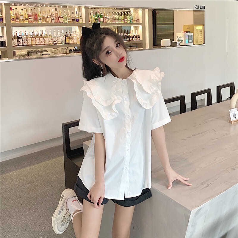 ZUCA”S - 娃娃領短袖荷葉邊襯衫 - XA-1190