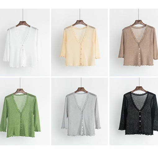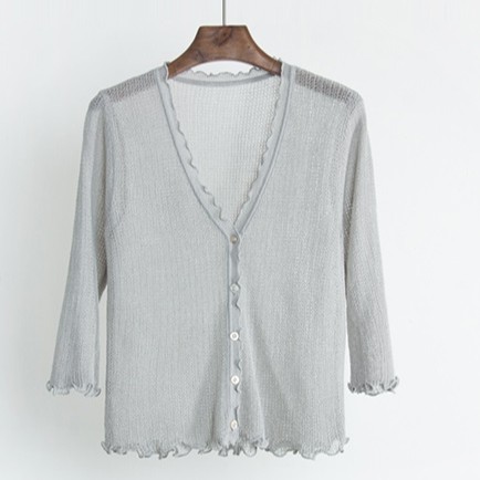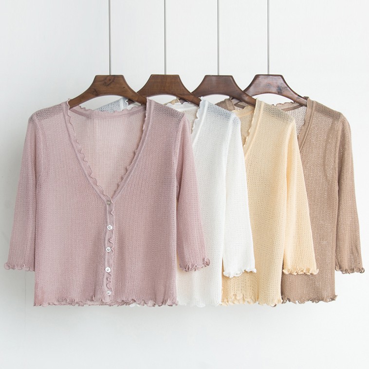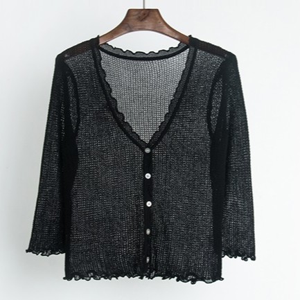 ZUCAS - 七分袖荷葉邊鏤空針織外套 - RT-1331