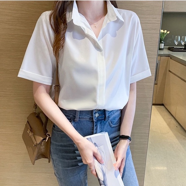 ZUCAS~(現貨)小翻領雪紡短袖襯衫 - TT-2155